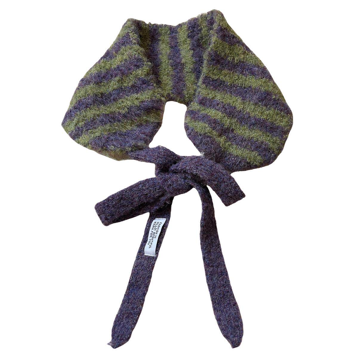 韩版 条纹针织小围巾女秋冬时髦设计系带包头护耳保暖耳罩 ins个性