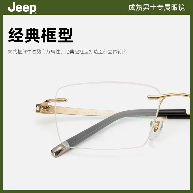 为您提供商品商务方框防蓝光T5021A JEEP吉普β钛合金无框眼镜近视可配度数男士的详细介绍,