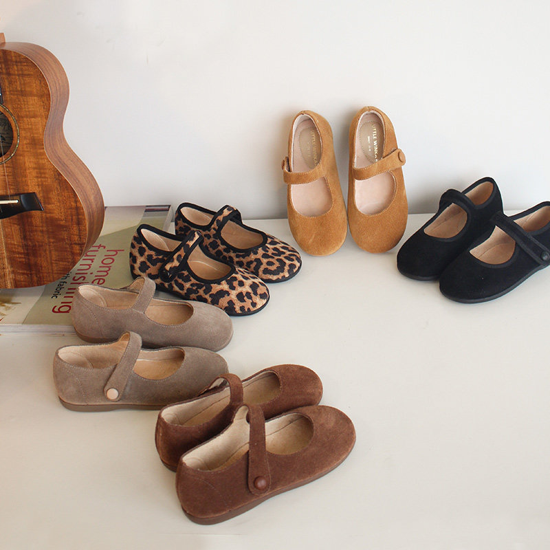 little 小童丝绒公主鞋 玛丽珍女童豹纹童鞋 winkaa儿童复古舞蹈鞋