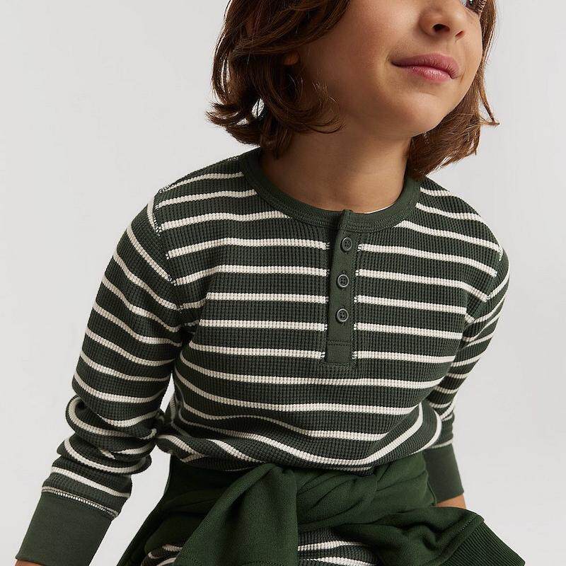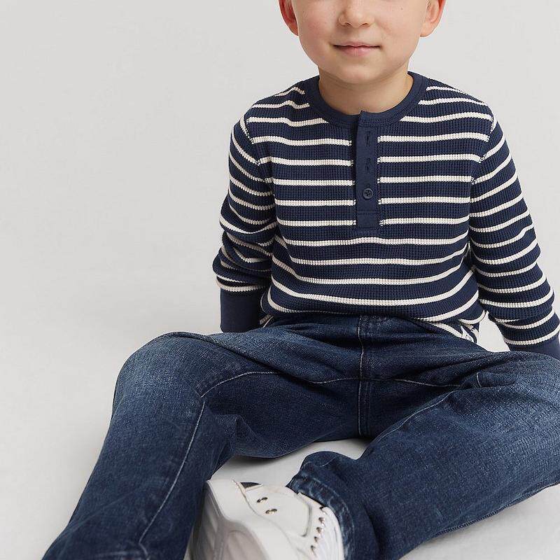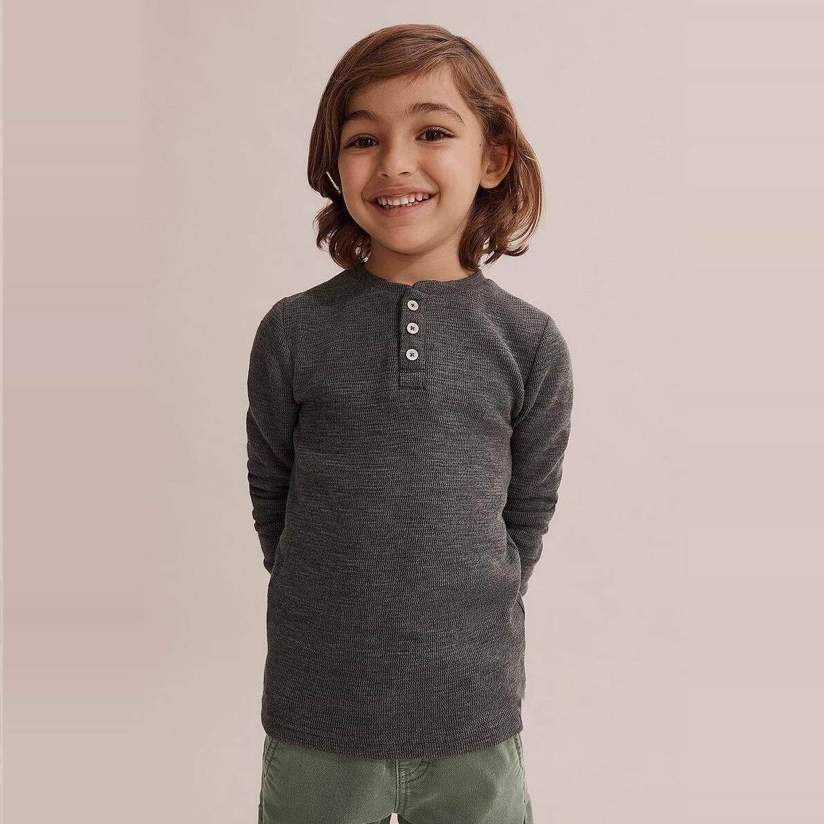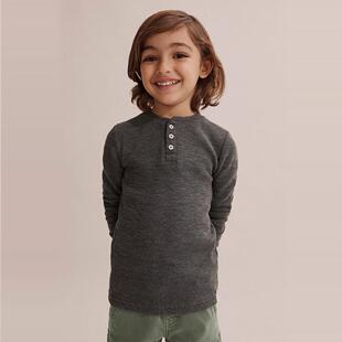 圆领纽扣竹节棉长袖 T恤打底外穿童休闲运动 新品 欧美风春季由