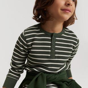 圆领纽扣竹节棉长袖 T恤打底外穿童休闲运动 新品 欧美风春季