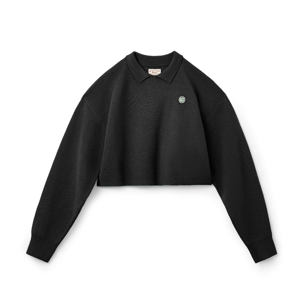 翻领卫衣百搭宽松长袖 T恤春女 短款 马登鼠尾草绿莫代尔混纺针织衫