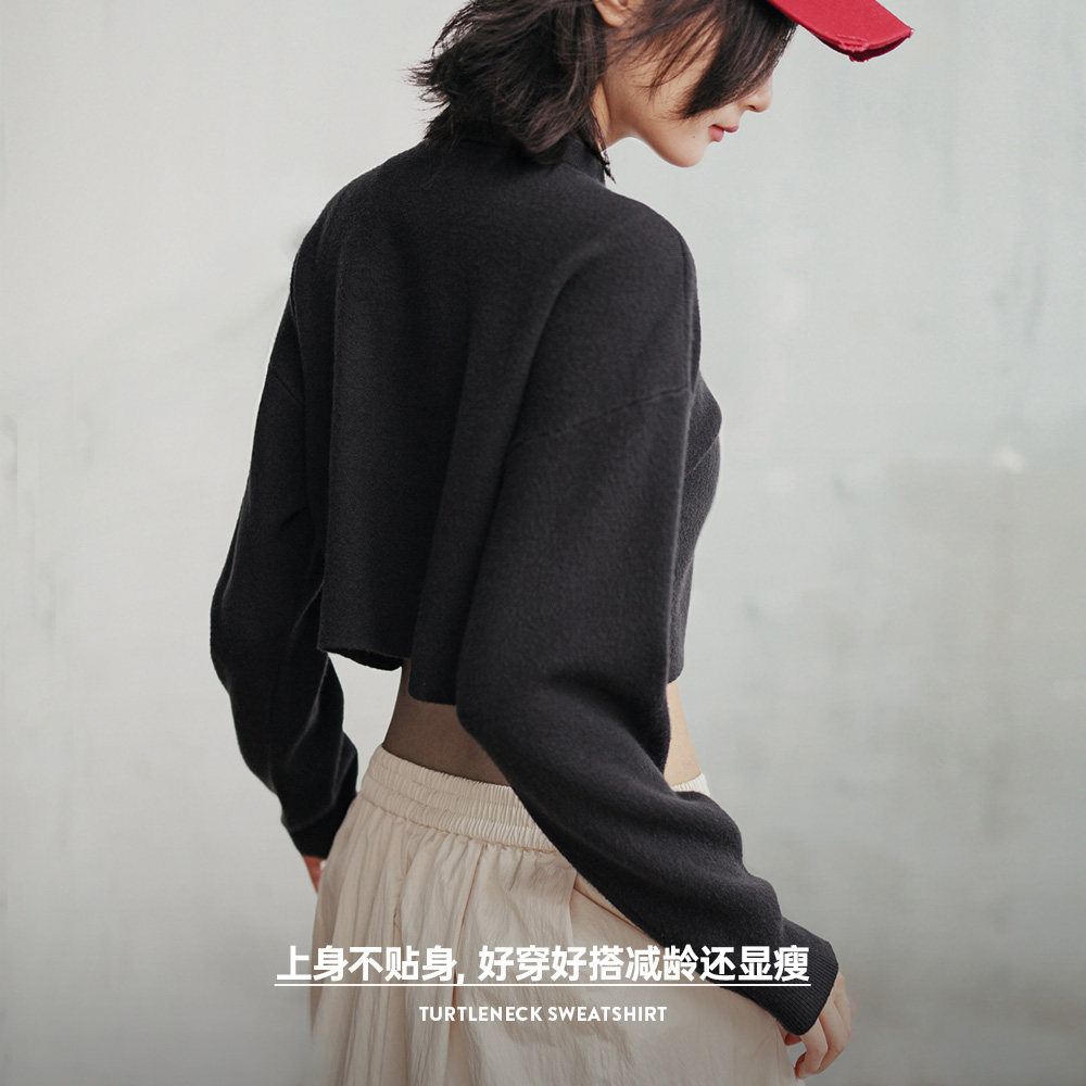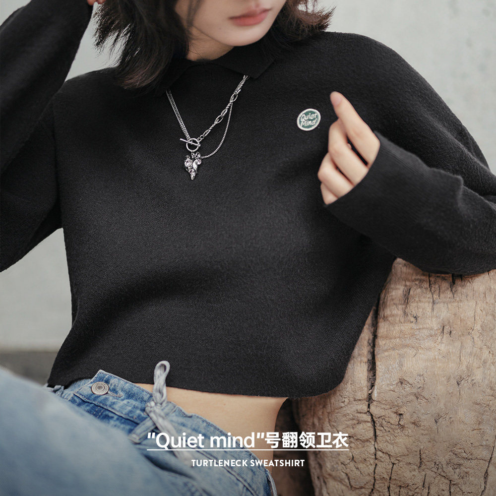 为您提供商品翻领卫衣百搭宽松长袖 T恤春女 短款 马登鼠尾草绿莫代尔混纺针织衫的详细介绍,
