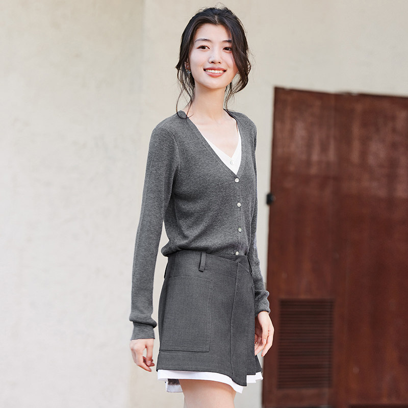 冰丝斜门襟拼接设计款 GCRUES商场同款 秋季 新款 G07Q07A0252 半裙女由