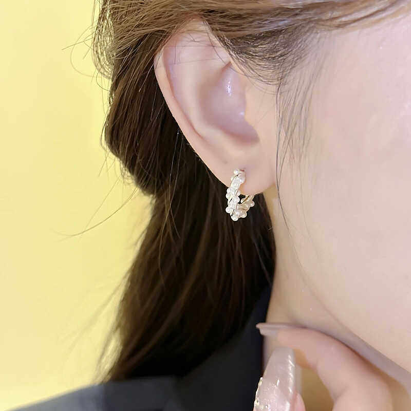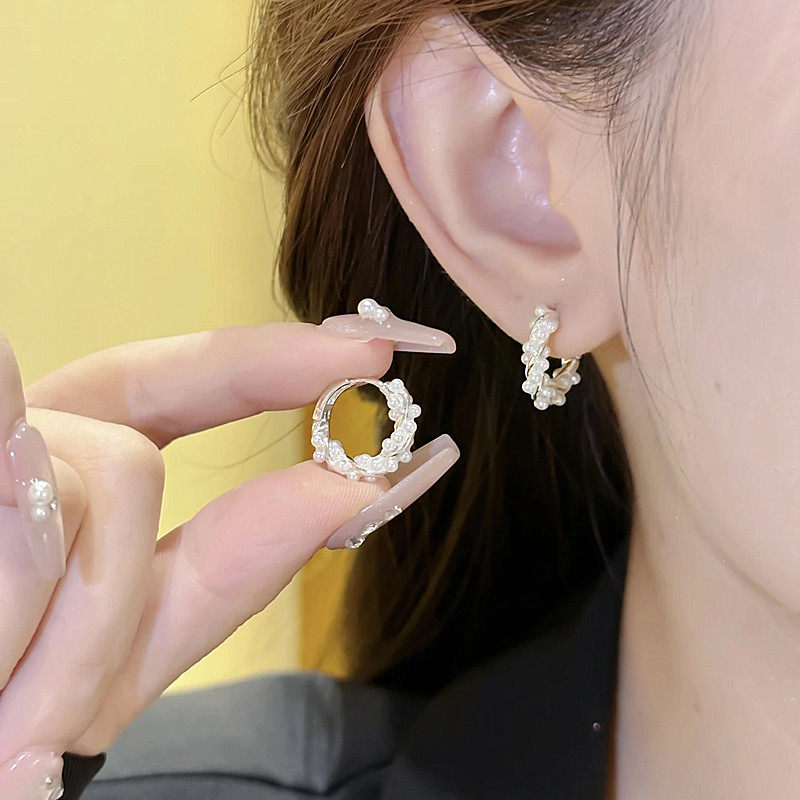 潮耳饰 s925银针缠绕珍珠耳环女小众高级感耳圈养耳洞耳钉2024新款