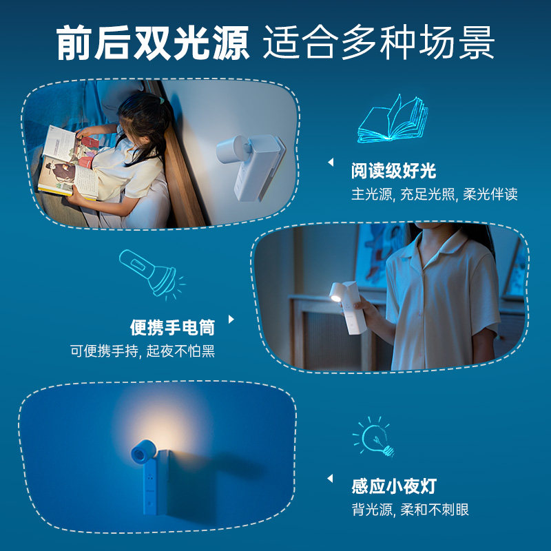 飞利浦护眼床头灯免打孔阅读壁灯卧室感应起夜灯充电小夜灯酷璇