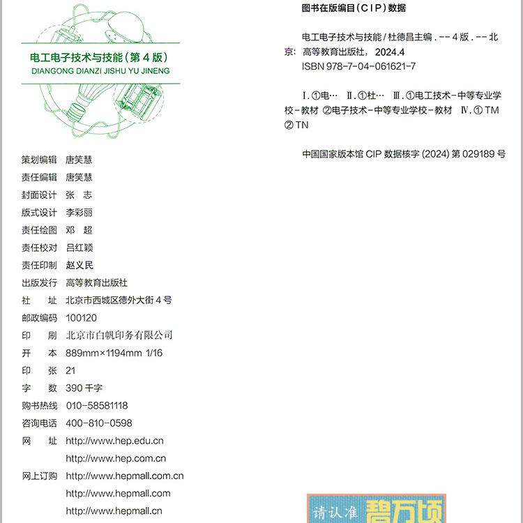 为您提供商品杜德昌主编十四五中等职业教育非电类专业课本用书练习册高等教育出版 社 中职电工电子技术与技能教材学习指导与练习第4版 高教版的详细介绍,