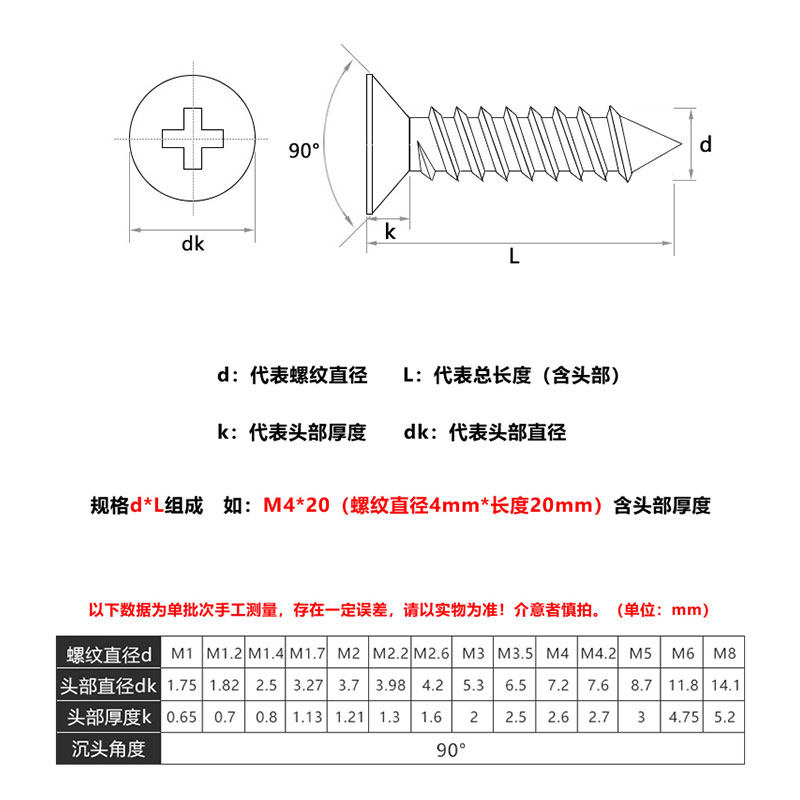 304不锈钢自攻螺丝十字沉头螺丝钉平头自攻丝KA加长木螺钉M3M4M5