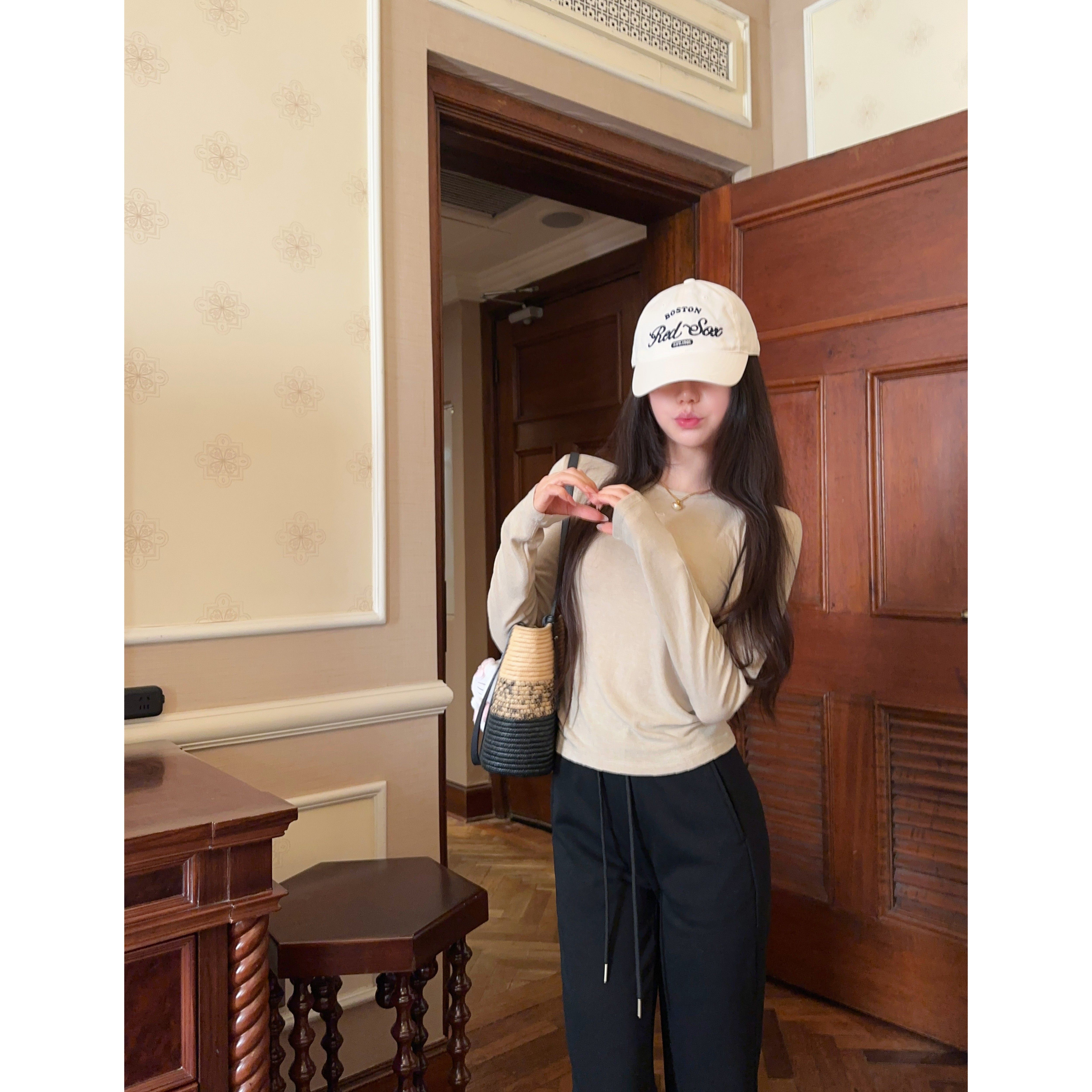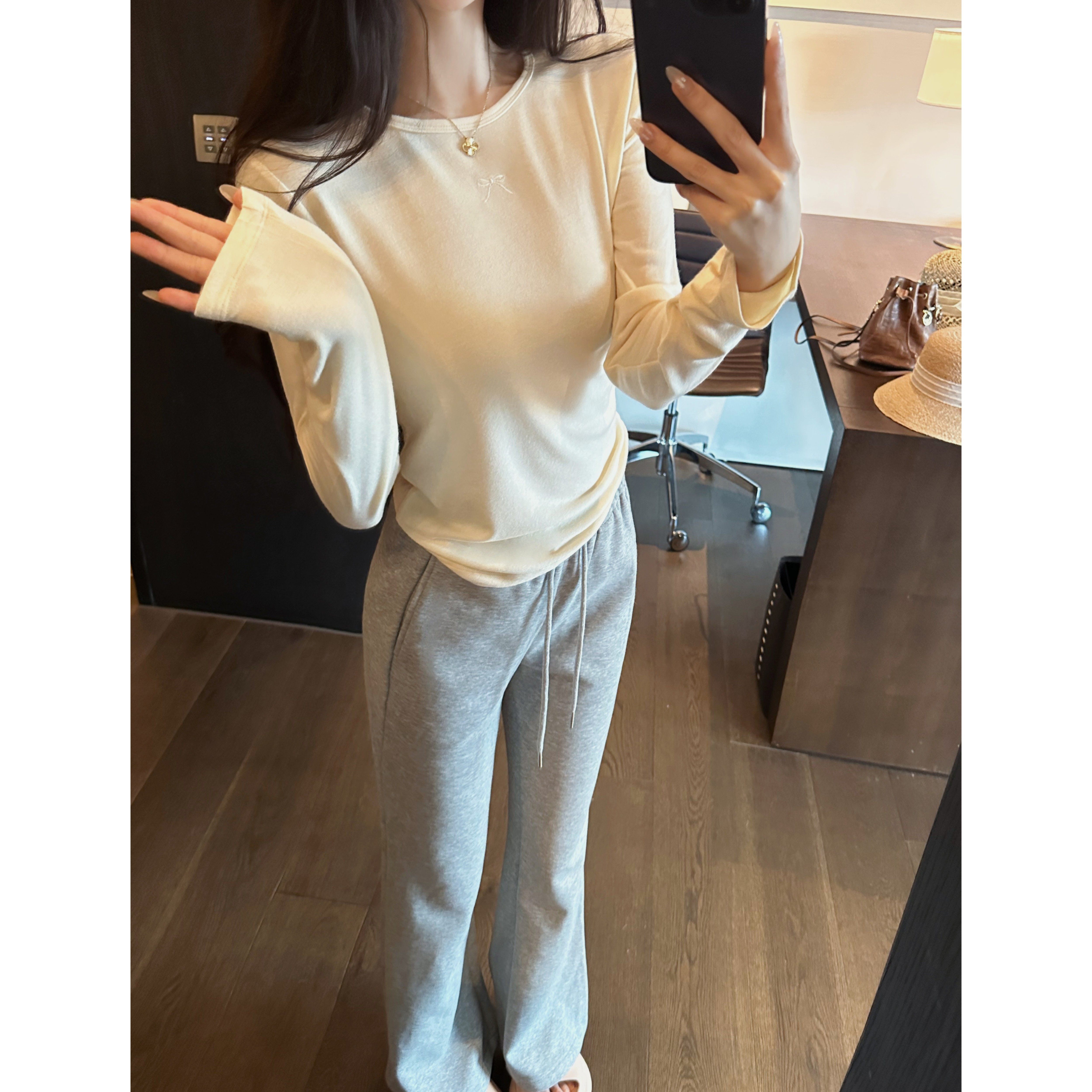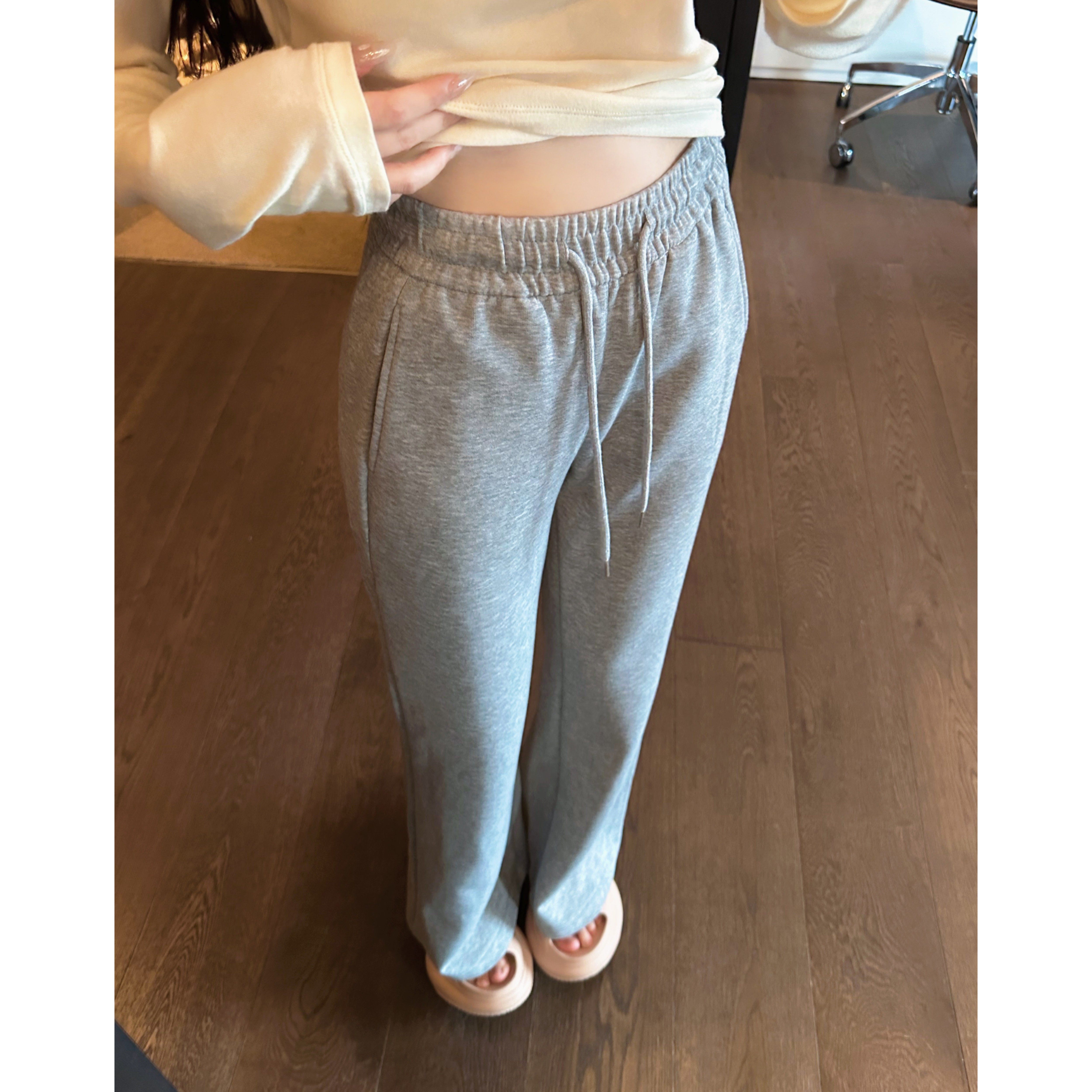 asomesome美式 女灰色修身 休闲松弛运动裤 子 黑色微喇直筒低腰卫裤