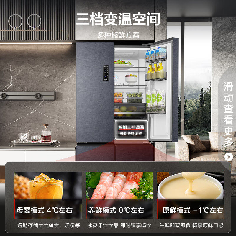美 249三门冰箱一级能效风冷无霜家用租房宿舍 政府换新补贴