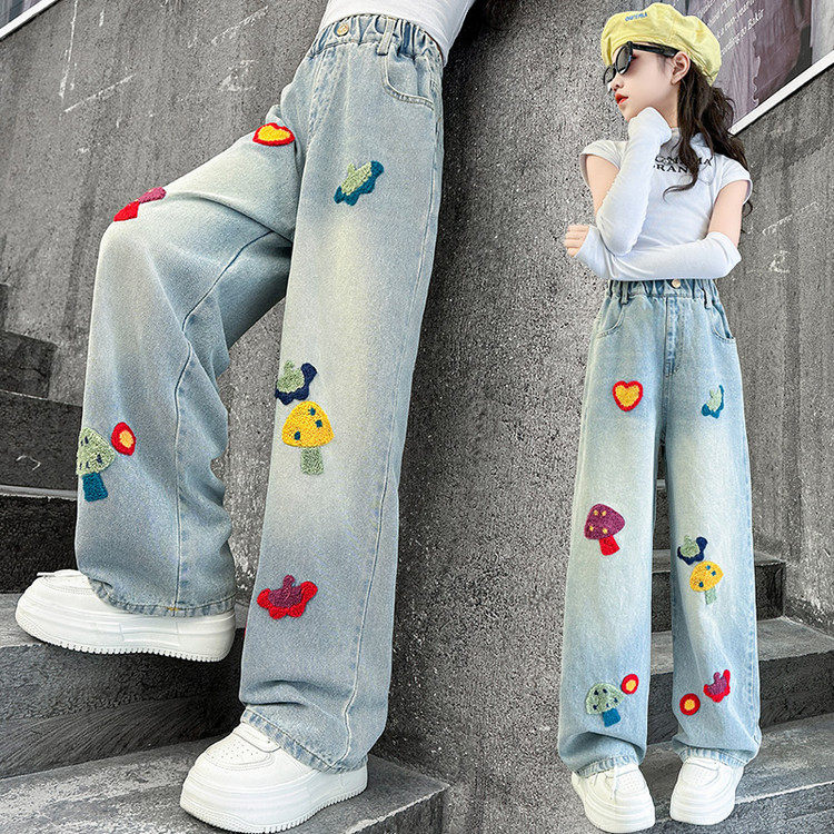 牛仔裤 女童裤 子春秋款 2026新款 女孩洋气独特超好看中大童直筒长裤