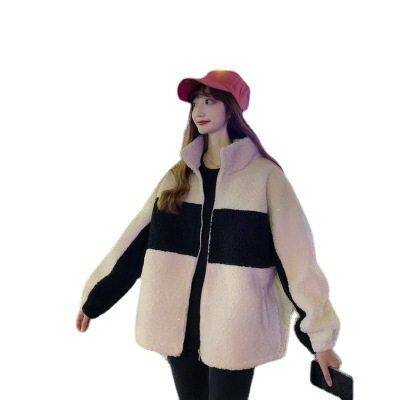 百搭宽松短款 立领休闲学生上衣潮 新款 仿羊羔绒毛外套女2022秋冬季