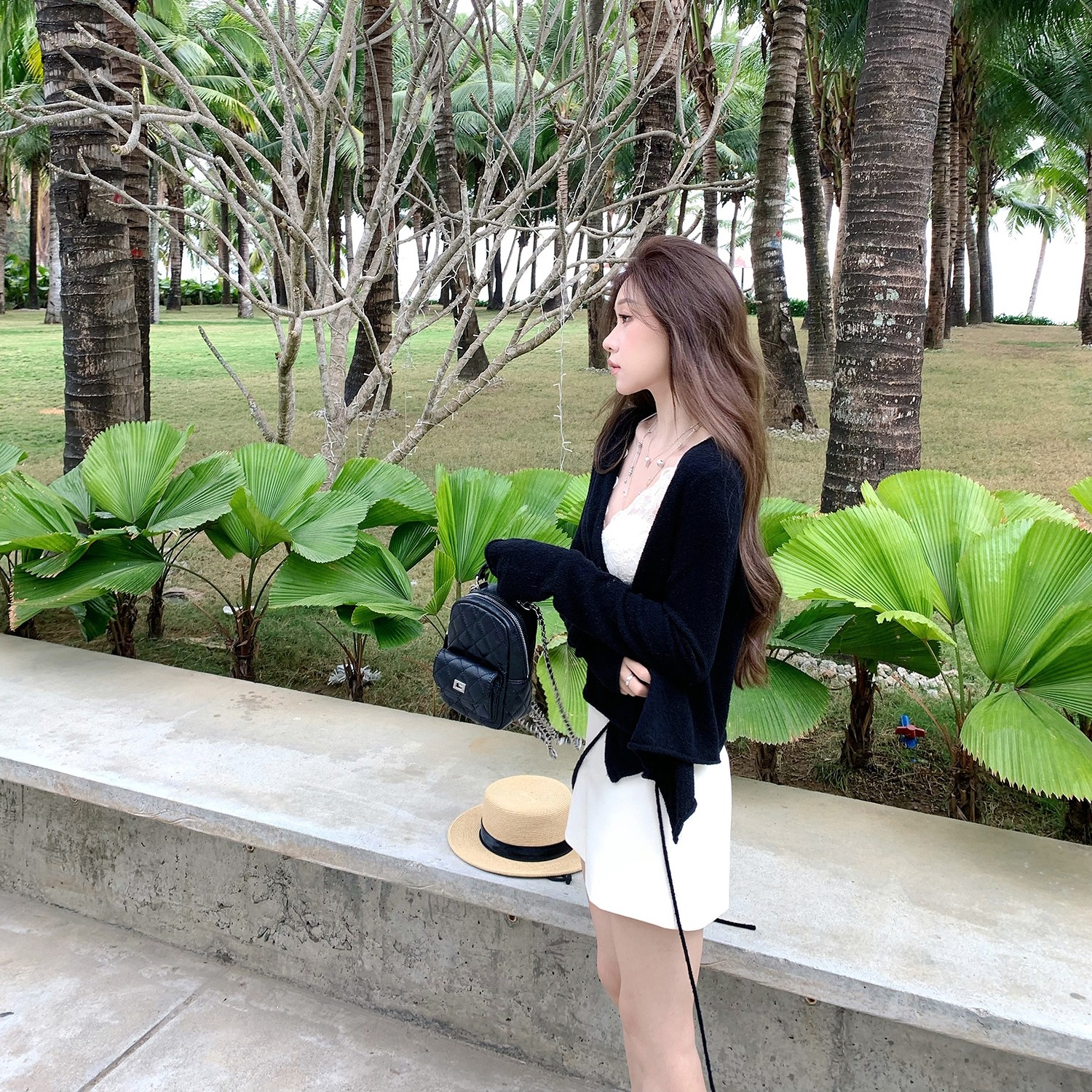 aaaaxbbb 风 羊毛针织开衫 外套V领吊带上衣纽扣圆领两件套 春禾季