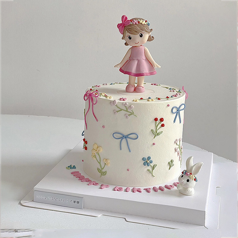 饰手绘小花蝴蝶结小兔子摆件 春天温柔系小公主周岁花花女孩蛋糕装由