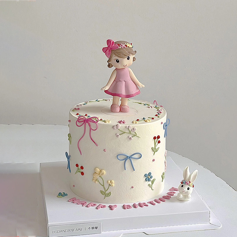 为您提供商品饰手绘小花蝴蝶结小兔子摆件 春天温柔系小公主周岁花花女孩蛋糕装的详细介绍,
