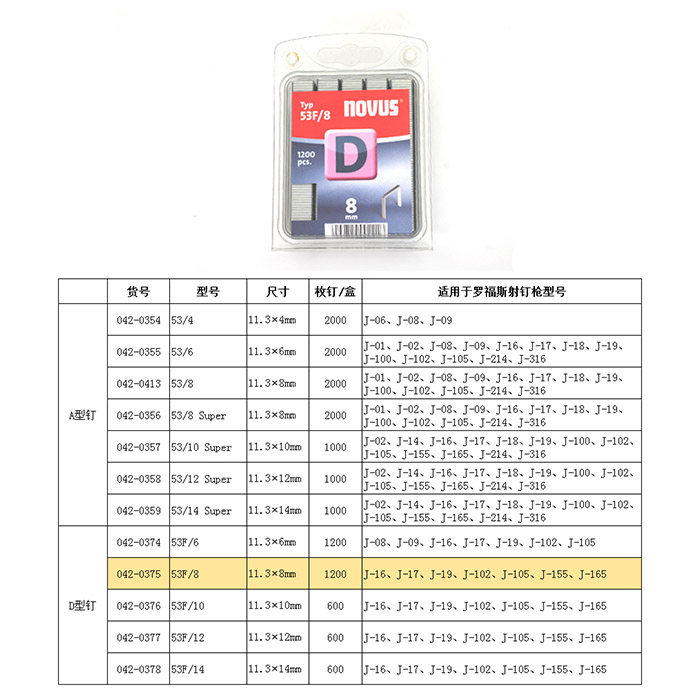 为您提供商品6枪钉U型木工排钉1200枚加厚门钉 NOVUS罗福斯D型手动射钉枪钉53F的详细介绍,