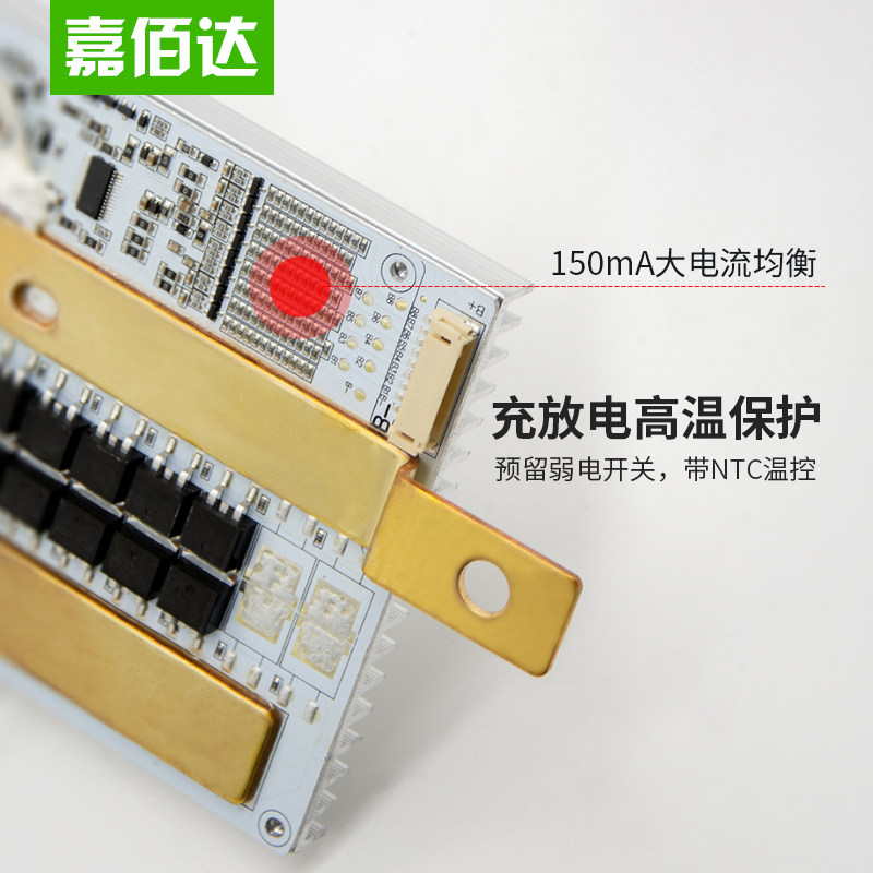 嘉佰达4串8串12V保护板磷酸铁锂带均衡大电流温控BMS120A150A200A