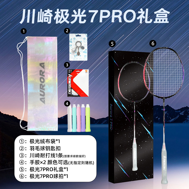 川崎极光7Pro极夜黑礼盒羽毛球拍全碳素初学超轻高端进攻训练正品