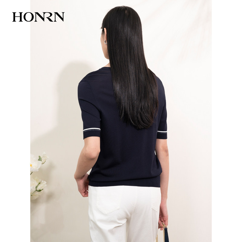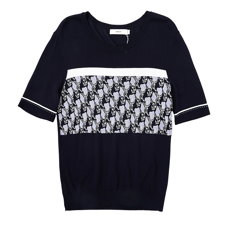 HONRN 针织衫 上衣女夏季 HI22OM665 红人宽松休闲提花圆领套头短袖由