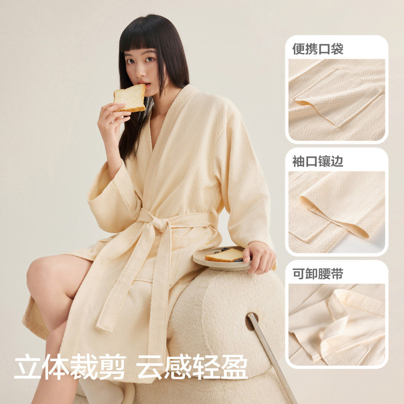 三利10A抗菌浴袍女款 夏吸水速干纯棉浴衣华夫格睡袍可穿浴巾四季由