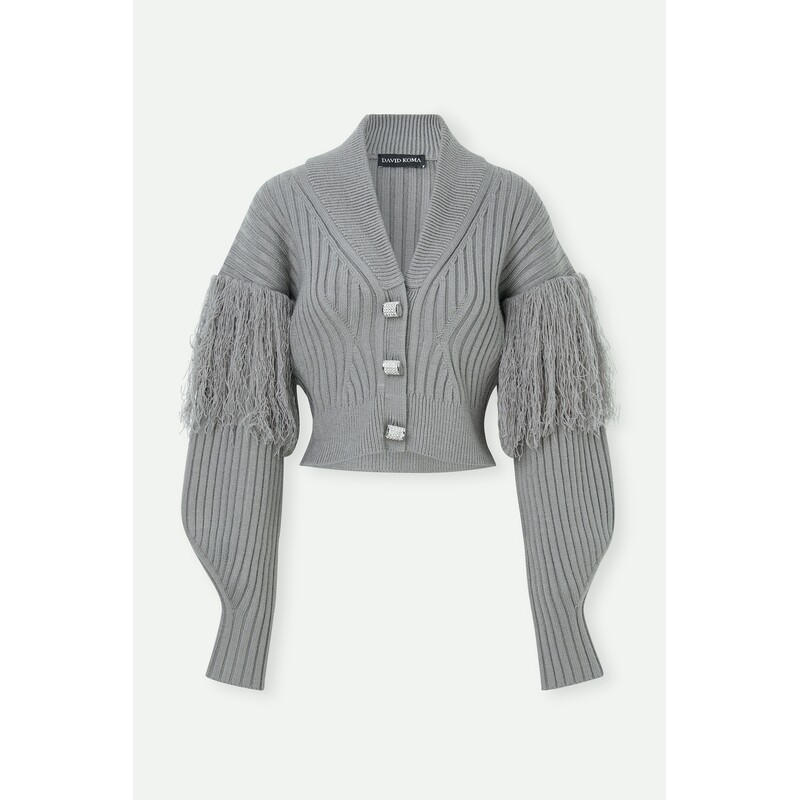 DAVID 季 末折扣 秋冬女士带缀饰流苏罗纹针织开襟衫 KOMA