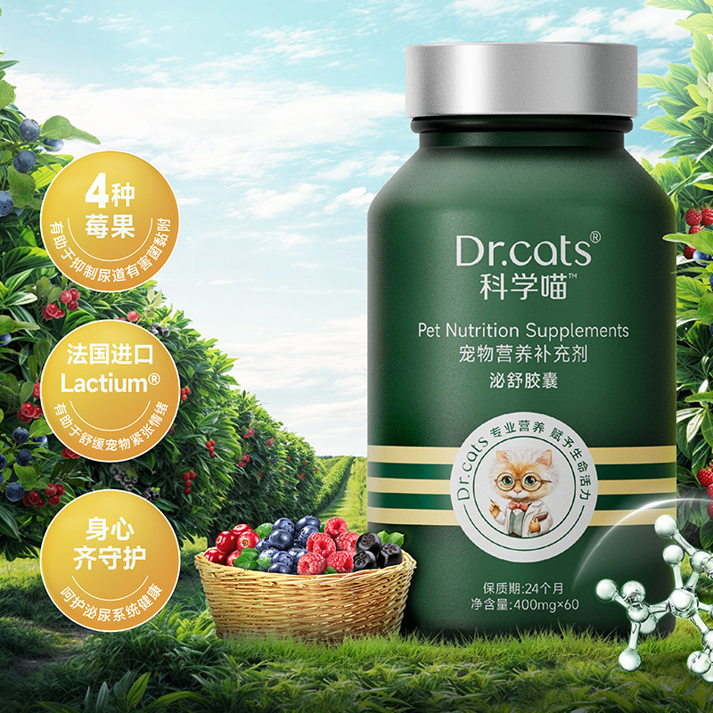 Dr.cats科学喵泌舒胶囊含水解酪蛋白加莓果呵护泌尿健康猫犬通用由