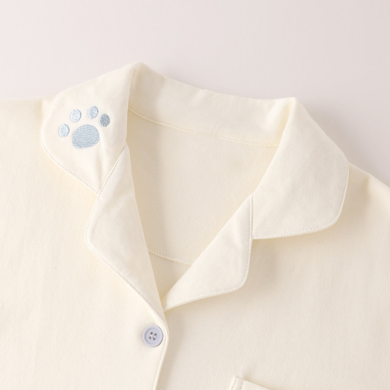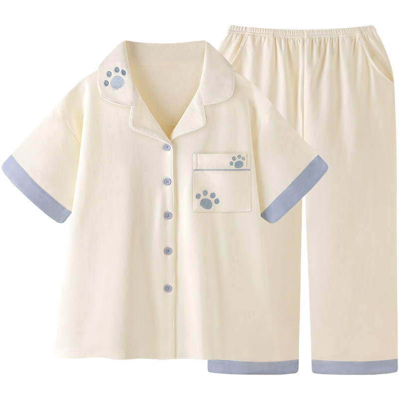 〖奶酷小猫爪〗清新简约纯棉睡衣女款 长裤 套装 夏男情侣家居服短袖