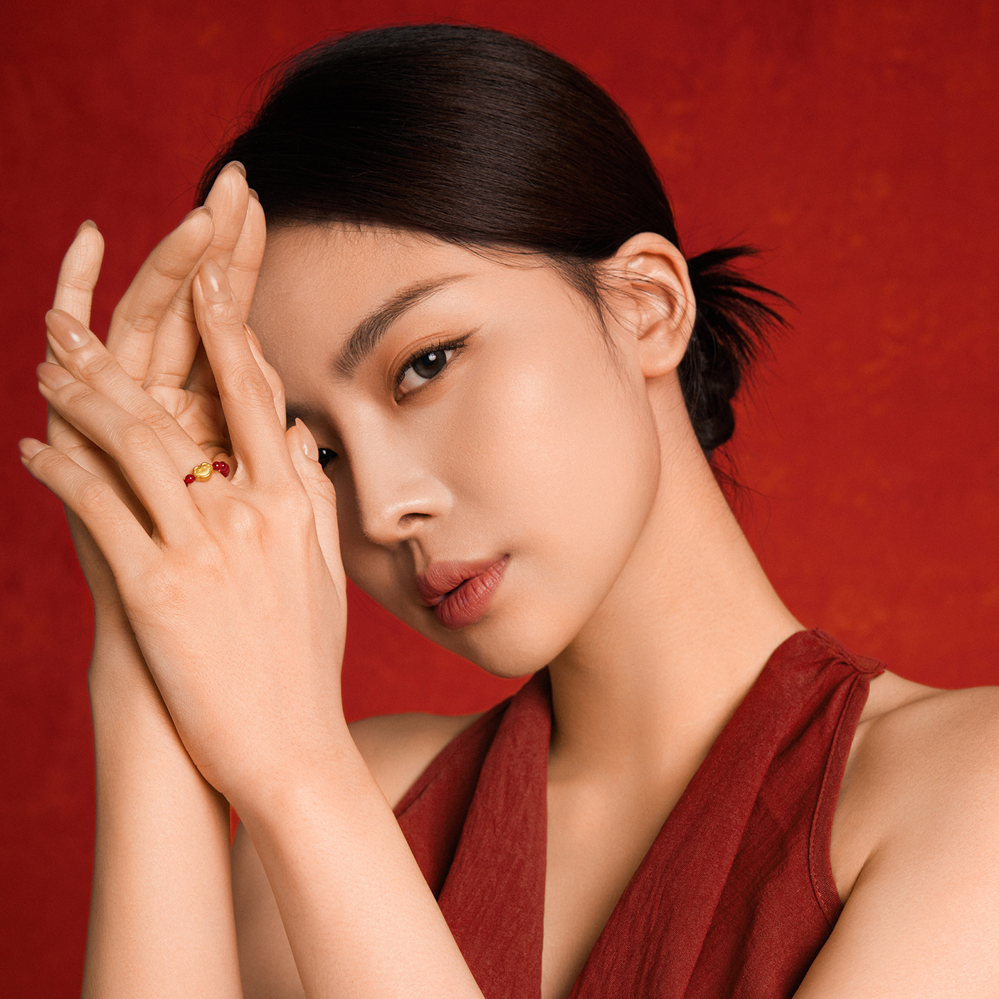 周六福黄金戒指足金女戒定价發财福禄玛瑙指圈送女朋友礼物官方