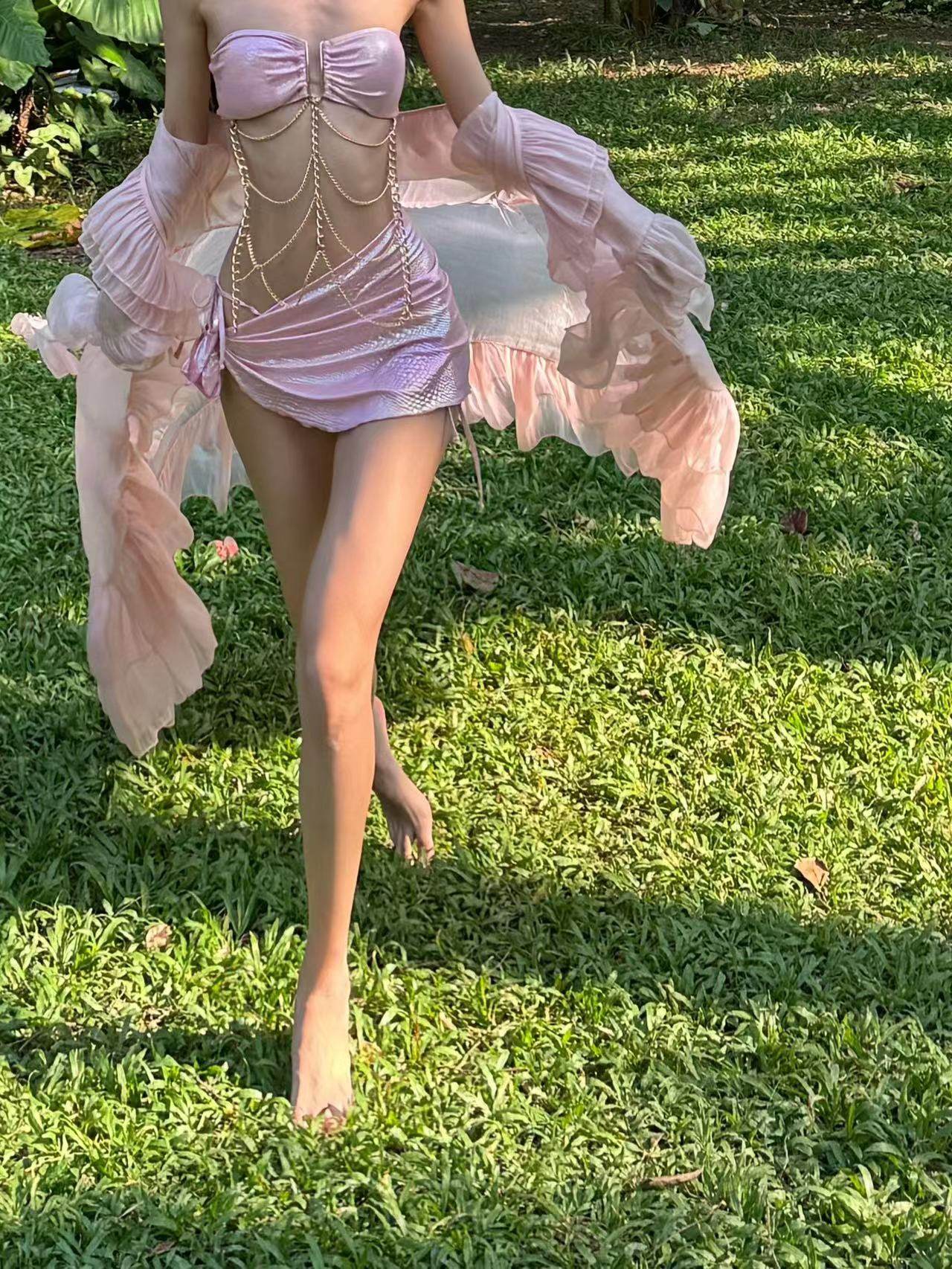 微胖长裙四件套海边度假泳衣女比基尼分体高级性感辣妹 般沐大码