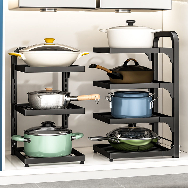 厨房锅架置物架家用多层锅具收纳架下水槽橱柜内柜子分层放锅架子