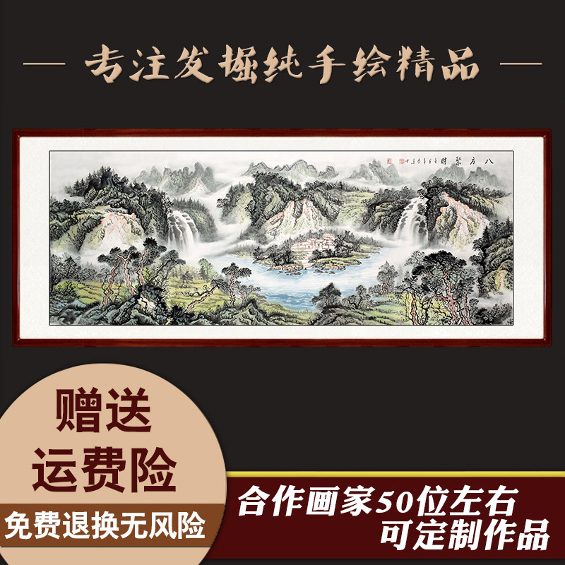 为您提供商品纯手绘八方聚财山水画客厅办公室招财靠山聚宝盆国画挂画芯可带框的详细介绍,