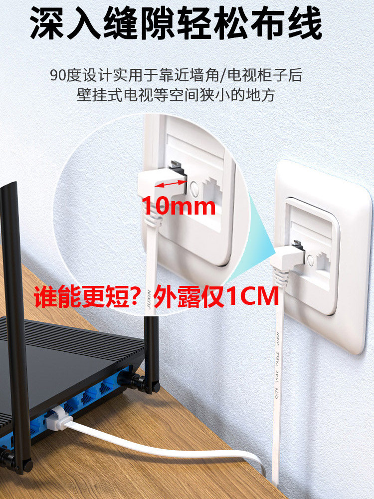 高速6类扁平90度弯头网线超六类成品千兆路由器电信宽带线通用L型由