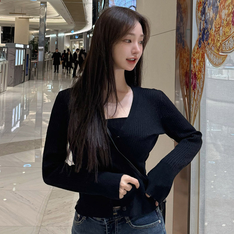 女v领百搭打底衫 外搭毛衣外套柔软 针织衫 早春新款