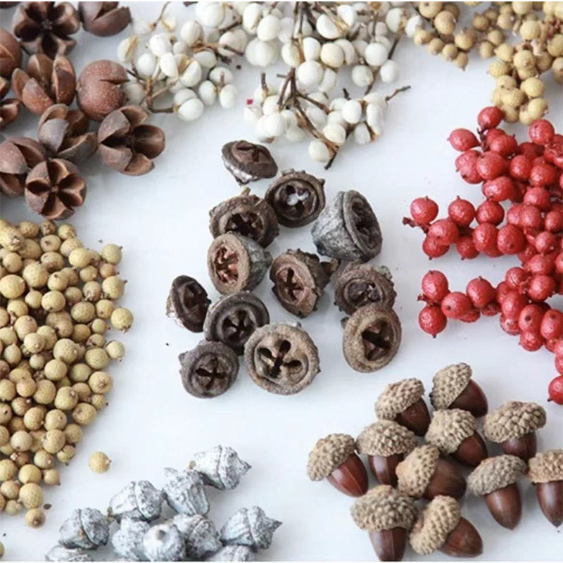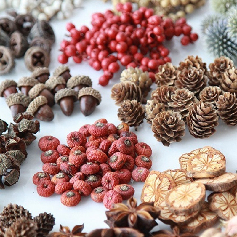 diy果壳松果木片树叶干花干果组合圣诞装 饰摆件复古道具 幼儿园装由