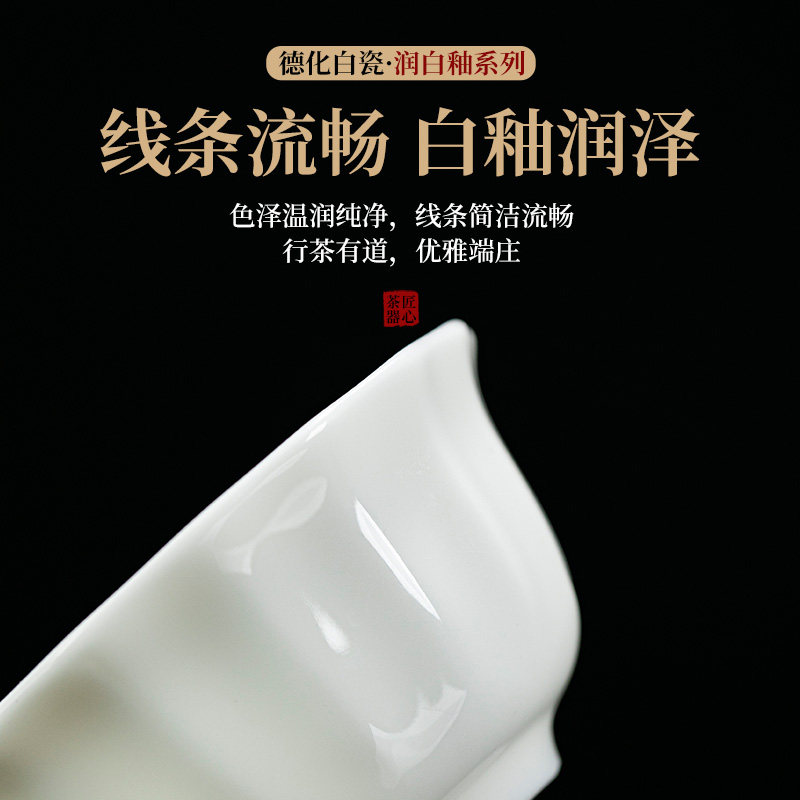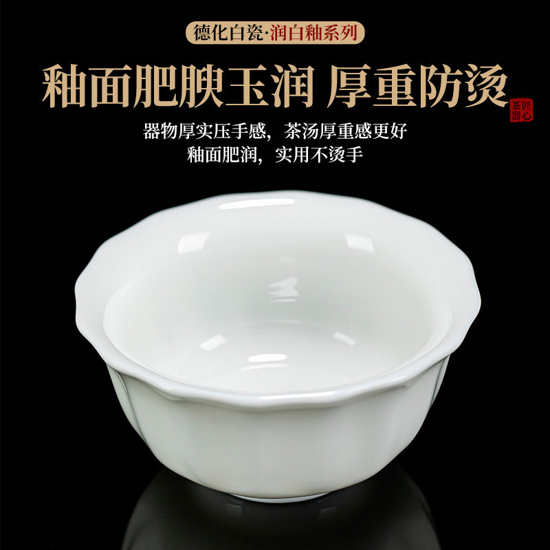 钰铨龙门 大师手作润白釉主人杯茶杯 传统德化白瓷江山在手压手杯由