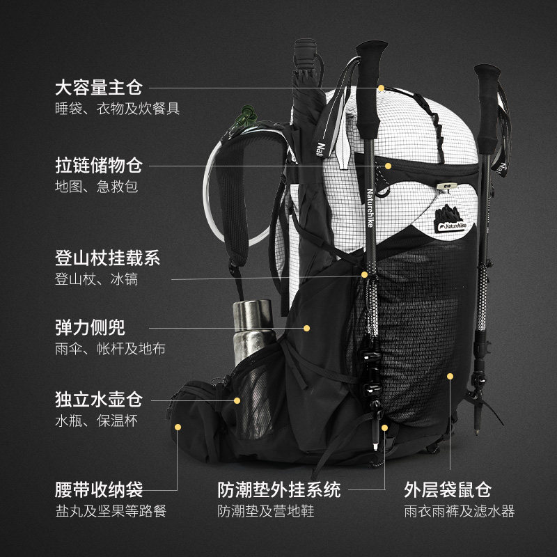 为您提供商品Naturehike户外专业登山包大容量露营轻量徒步双肩背包旅行40L的详细介绍,
