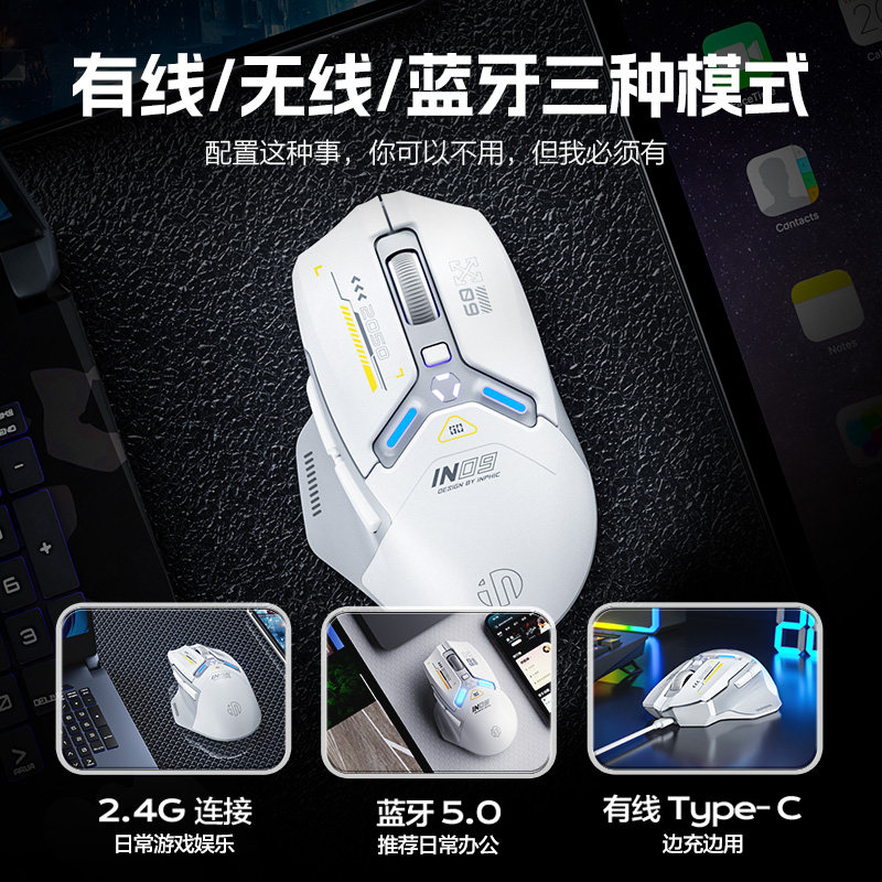 IN9三模无线鼠标有线蓝牙游戏电竞充电机械电脑笔记本电脑由