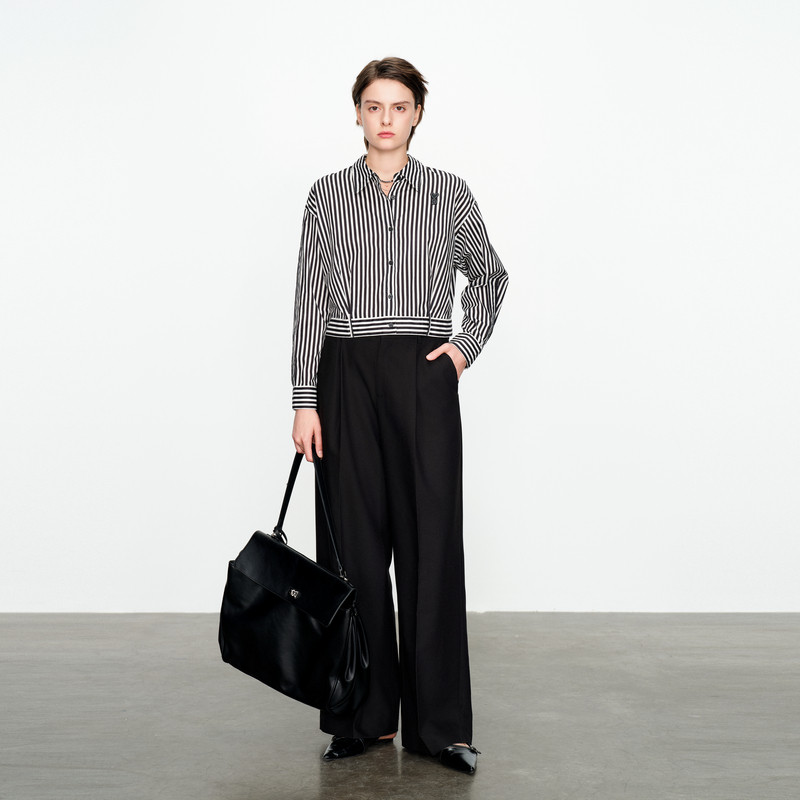 婉甸2025春季 黑色阔腿裤 百搭风休闲裤 1241P03DY2 新品由