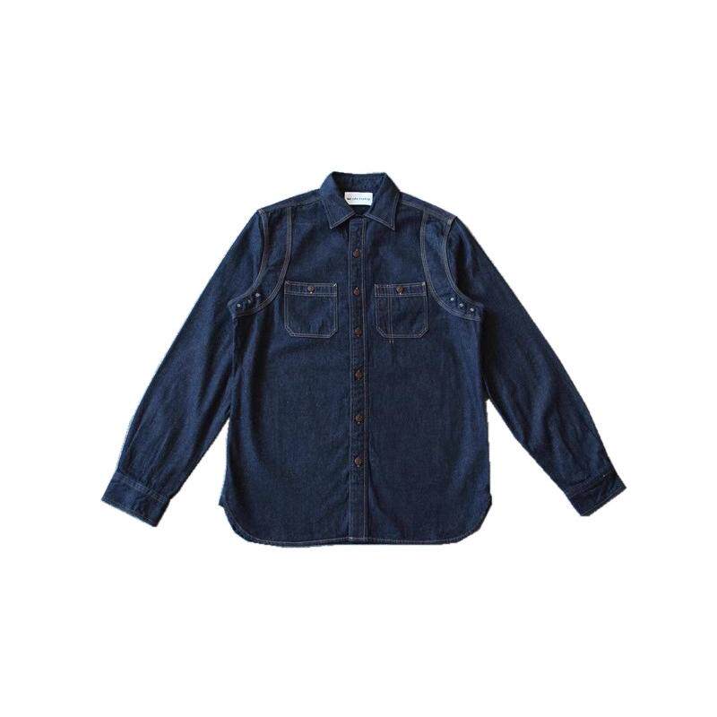 乐福佬仁双啊男装 日笨蓝染面料原色工装 牛仔衬衫 todayC11 shi
