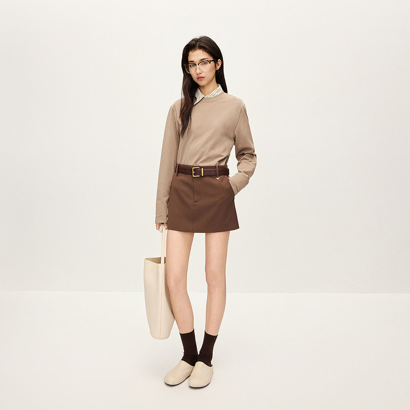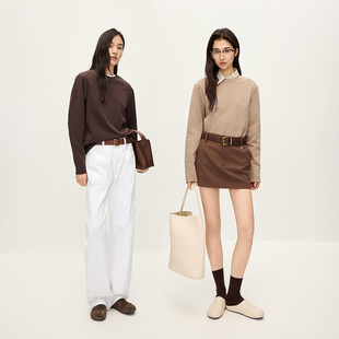 t恤女上衣纯色气质高级休闲秋冬新品 100%棉长袖 OCHIRLY欧时力由
