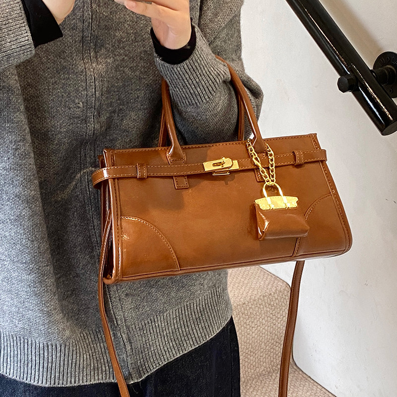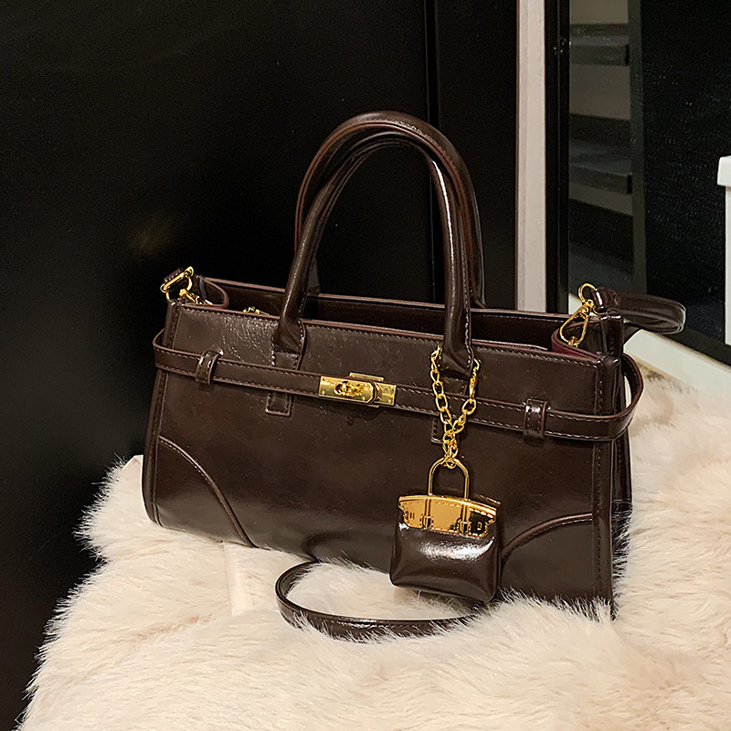 小众时尚 复古休闲单肩包高级感女包 油蜡皮手提公文包2026秋冬新款