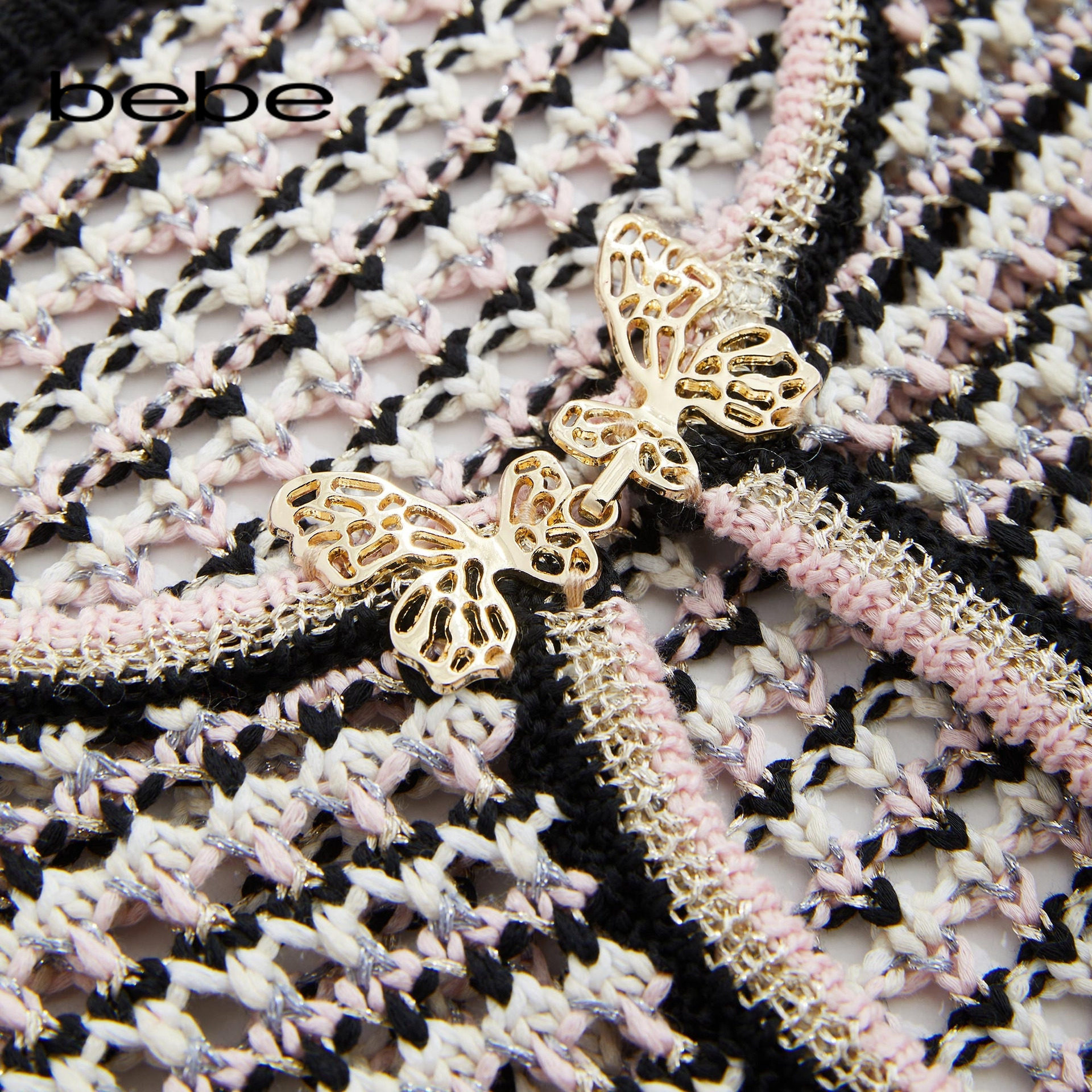 bebe春夏女士小香风含棉蝴蝶挂钩肌理感挑孔设计针织连衣裙130904由