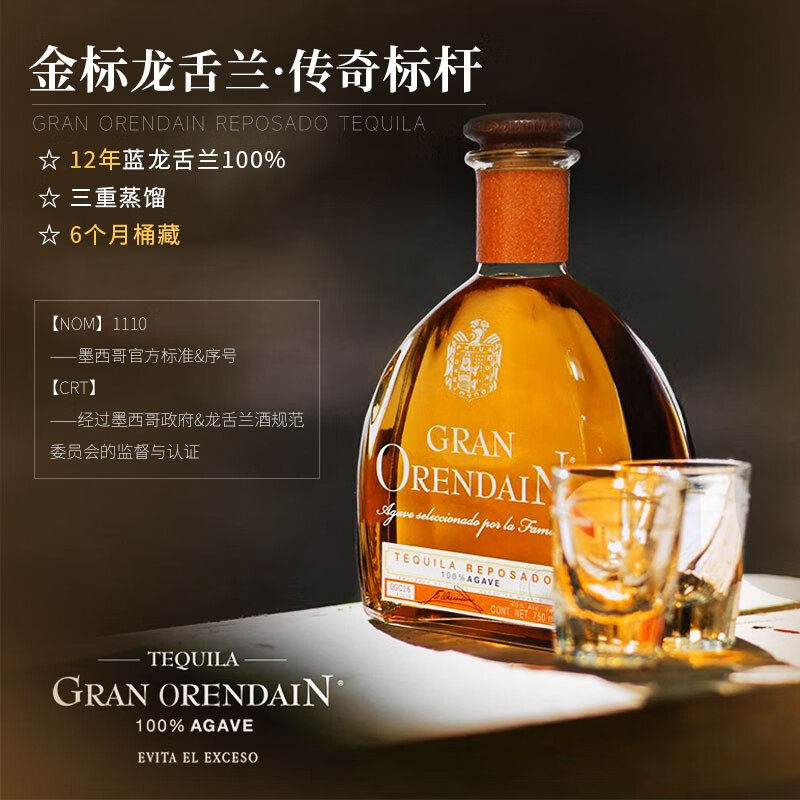 墨西哥进口欧帅珍藏金银标陈酿100%龙舌兰鸡尾酒调酒礼盒送礼洋酒由