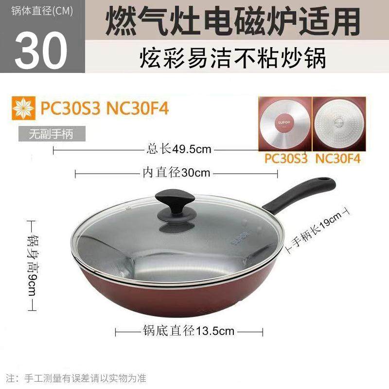 34F4无油烟PC30S3 PC32S3 苏泊尔炫彩易洁不粘锅炒锅NC30由