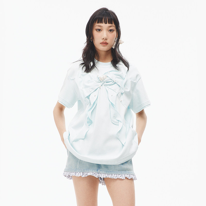 设计感小众蝴蝶结可露丽风短袖 t恤女 爆款 lefame拉飞姆时尚
