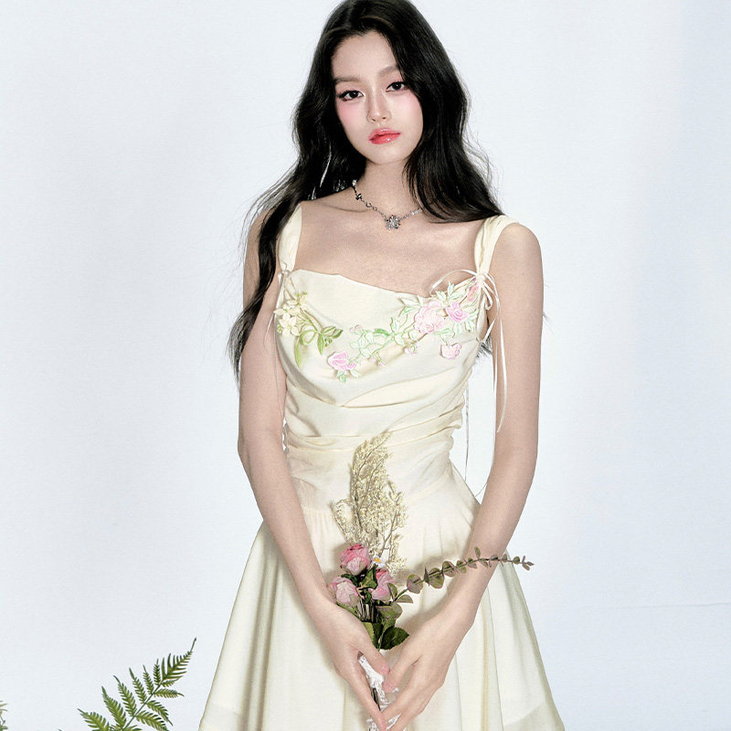 刺绣钉珠礼服仙气鱼尾裙吊带连衣裙长款 月光兽灵 血液供给原创