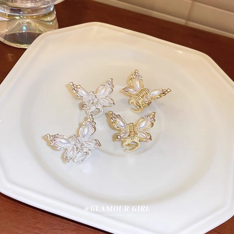 银色蝴蝶发夹女侧边刘海抓夹发卡迷你夹子头饰发饰鲨鱼夹发抓小号由