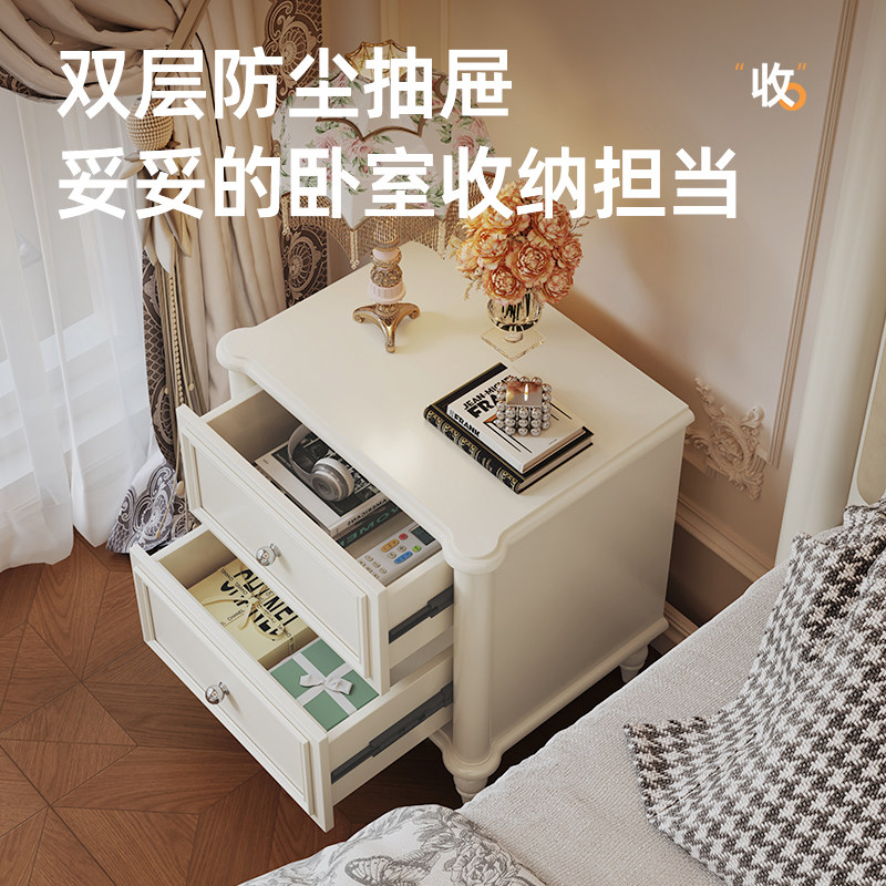 法式 实木床头柜卧室轻奢高级感小户型床边侧边柜奶油风2026年新款