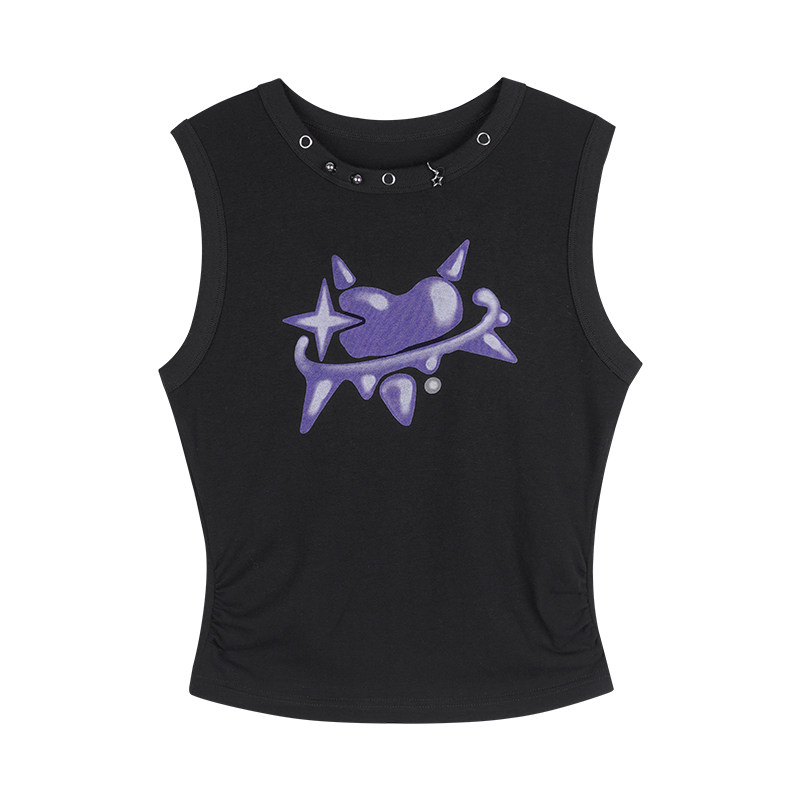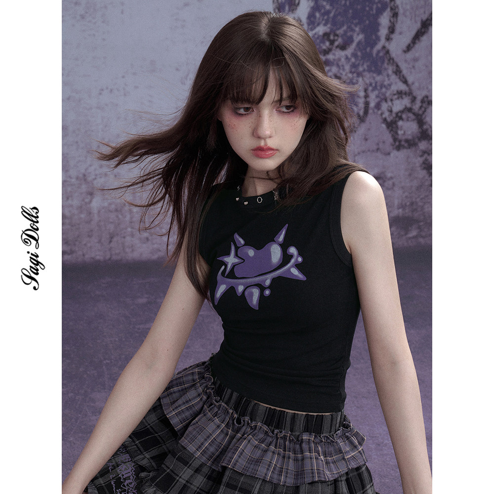 女主唱 甜酷黑色涂鸦印花背心音乐节 放课后 SagiDolls少女斗志