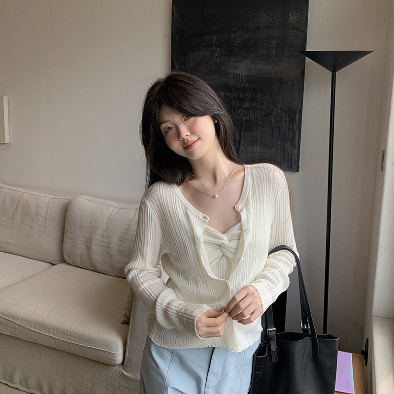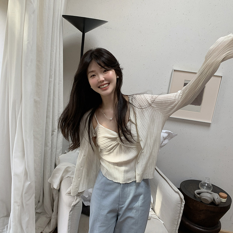 夏季 一三良品小个子 女两件套装 针织防晒衫 100来赛尔吊带开衫 薄款